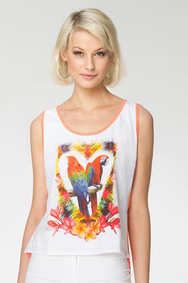 Фото товара 7070, топ с принтом попугаи