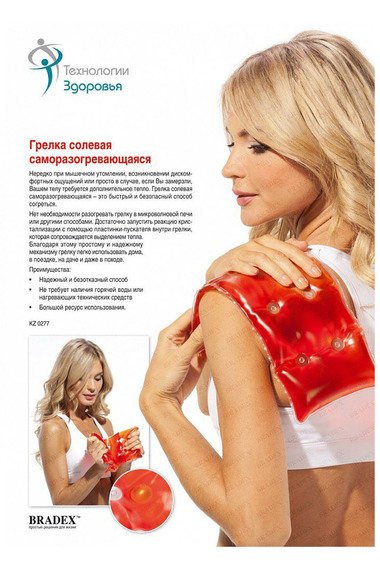 Нередко при мышечном утомлении, возникновении дискомфортных ощущений или просто в случае, если Вы замерзли, телу требуется дополнительное тепло. Грелка солевая саморазогревающаяся – это быстрый и безопасный способ согреться. Нет необходимости разогревать грелку в микроволновой печи или другими способами. Достаточно запустить реакцию кристаллизации с помощью пластинки-пускателя внутри грелки, которая сопровождается выделением тепла. Благодаря этому простому и надежному механизму грелку легко использовать дома, в поездке, на даче и даже в походе.