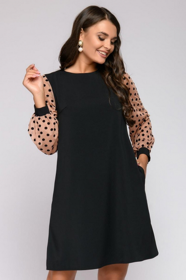 Фото товара 21972, черное платье свободного силуэта с длинными рукавами из фатина